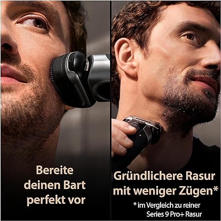 • Noch gründlichere Rasur in weniger Zügen (getestet im Vergleich mit reiner Series 9 Pro+ Rasur): In Kombination mit dem besten Rasierer von Braun für ultimative Gründlichkeit und Hautkomfort