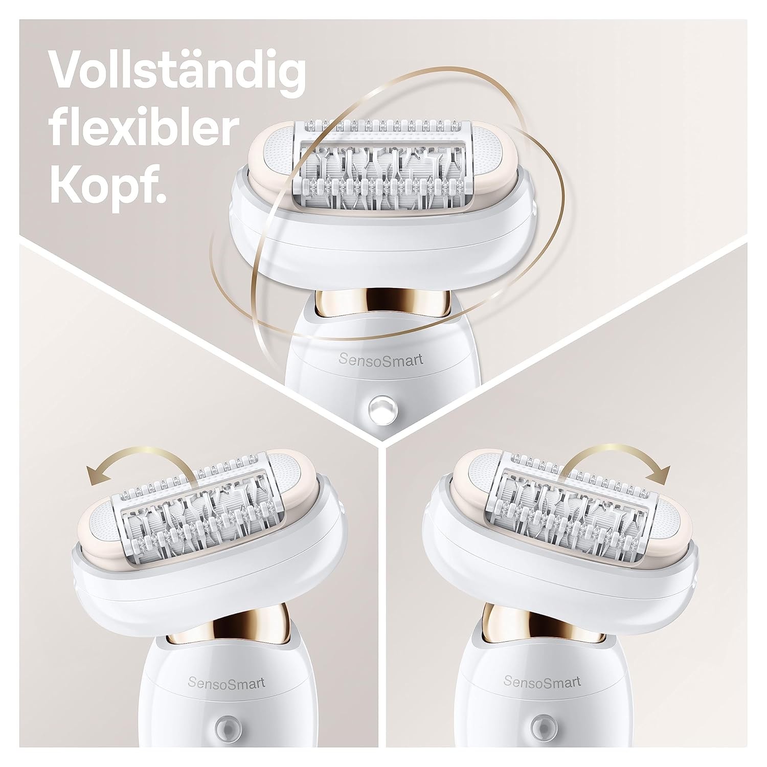 • Flexibler Kopf passt sich Körperkonturen an für gründliche Haarentfernung