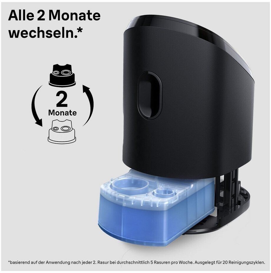 Die Reinigungskartuschen sorgen für eine gründliche Reinigung und optimale Hygiene Ihres Rasierers. Die pflegenden Öle in der Lösung schützen das Schersystem und verlängern die Lebensdauer der Klingen. Die alkoholhaltige Flüssigkeit entfernt Barthaare und Ablagerungen effektiv.