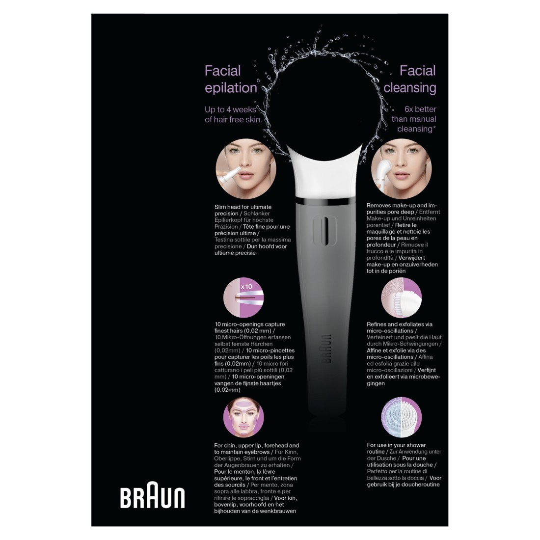 • Weltweit erster Gesichtsepilierer mit Reinigungsbürstensystem
