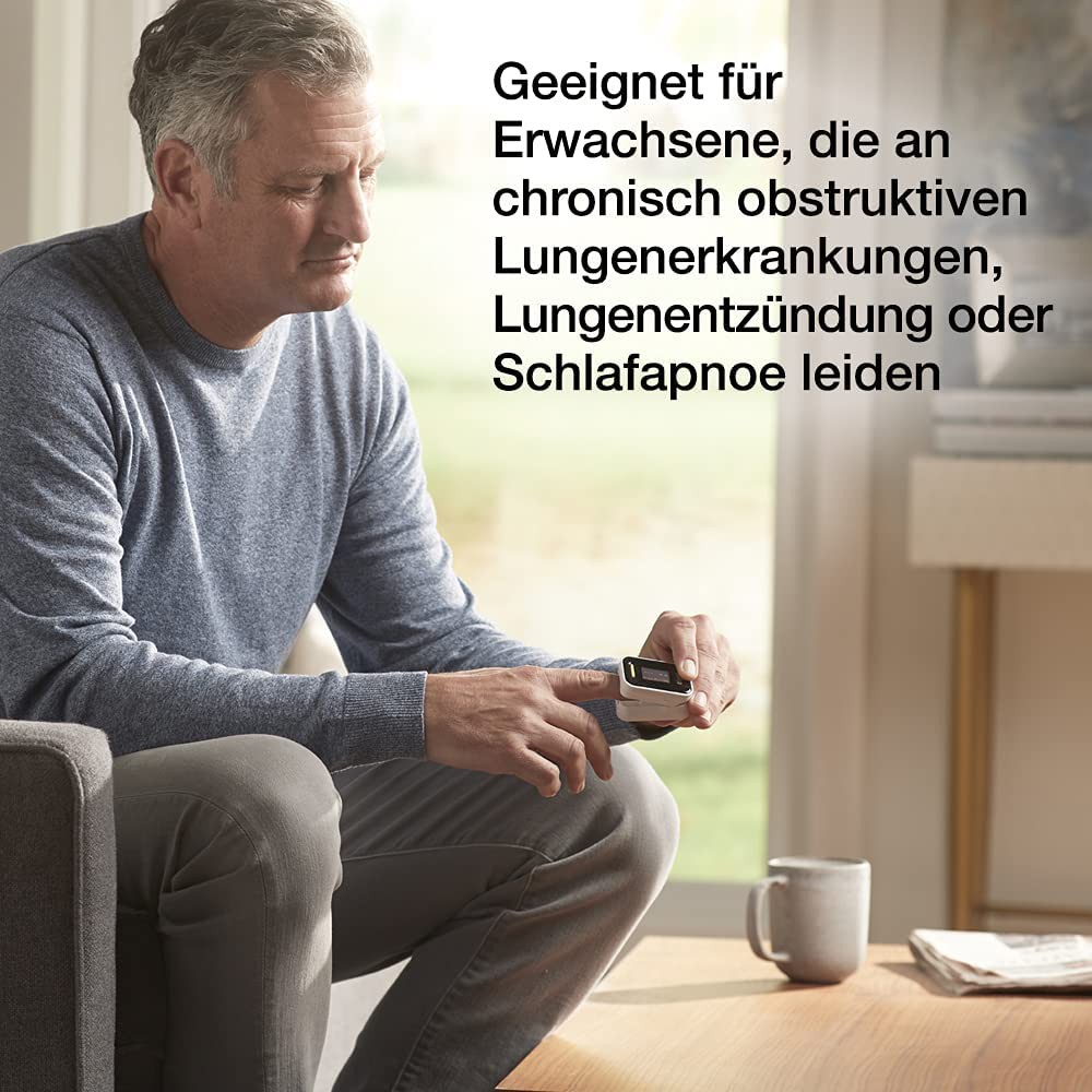 Geeignet für Erwachsene (> 18+) mit gesundheitlichen Problemen wie COPD, Lungenentzündung oder Schlafapnoe.