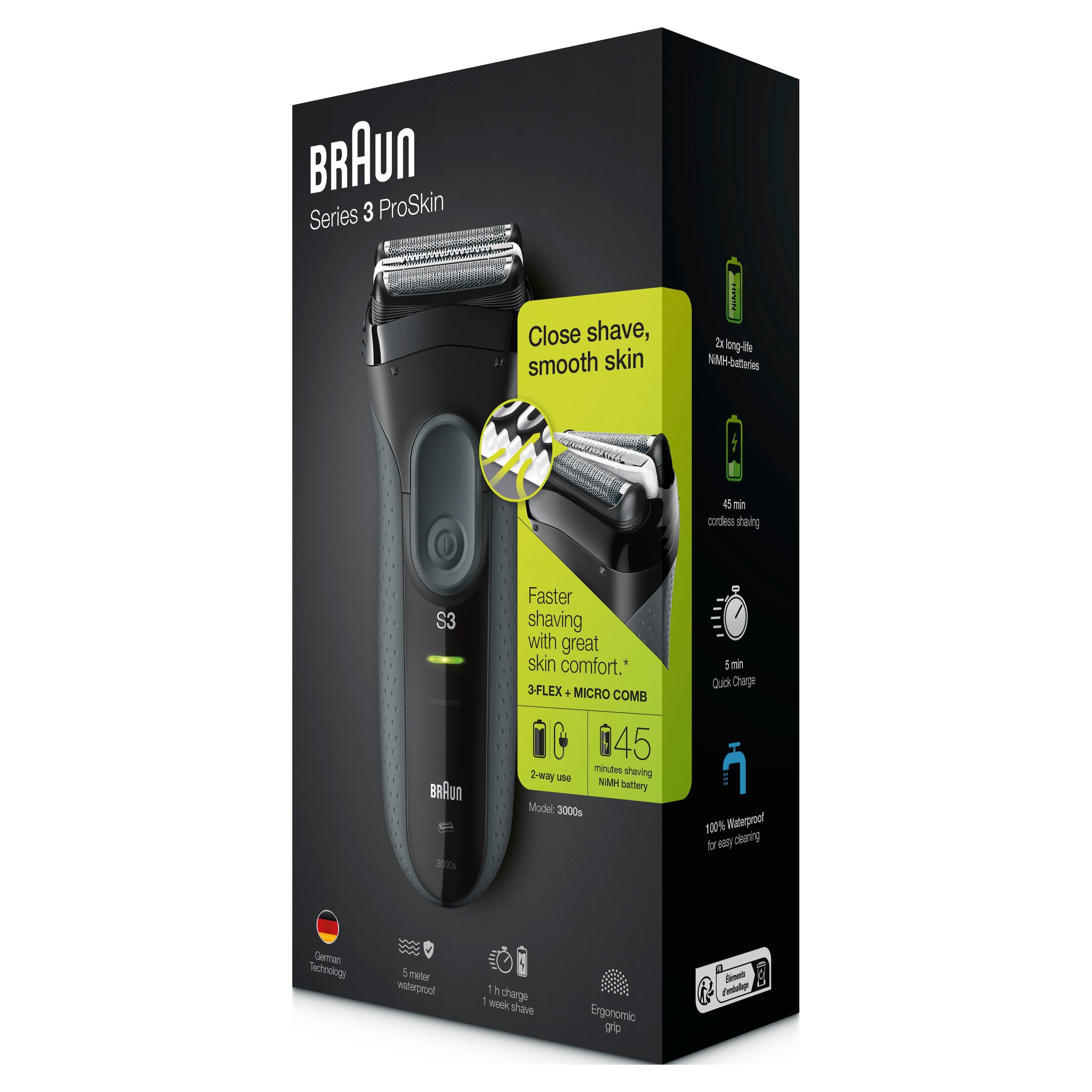 Braun Series 3 ProSkin - 3000s b Elektrorasierer, Schwarz