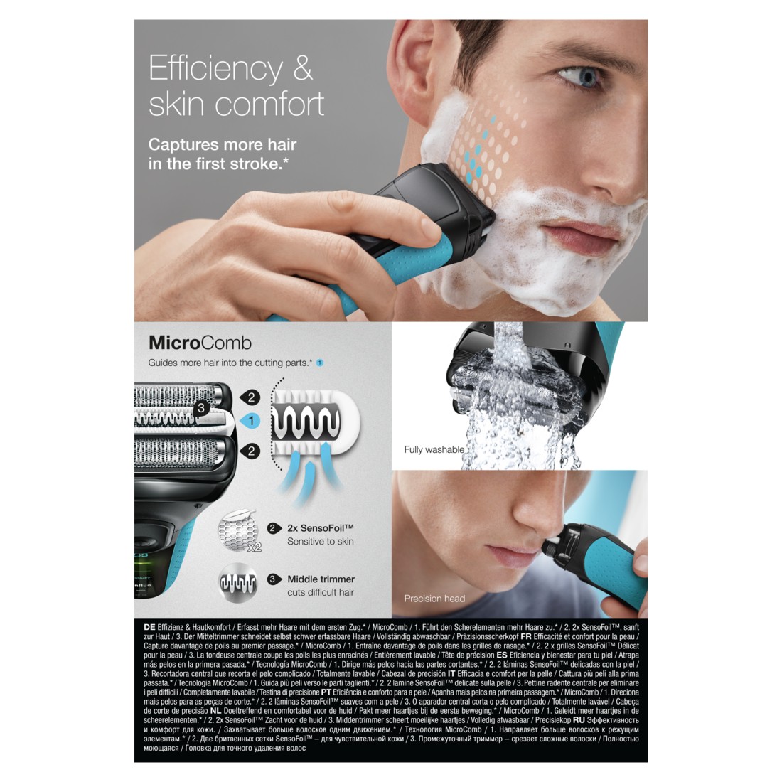 • MicroComb-Technologie erfasst mehr Haare pro Zug, für eine effiziente Rasur