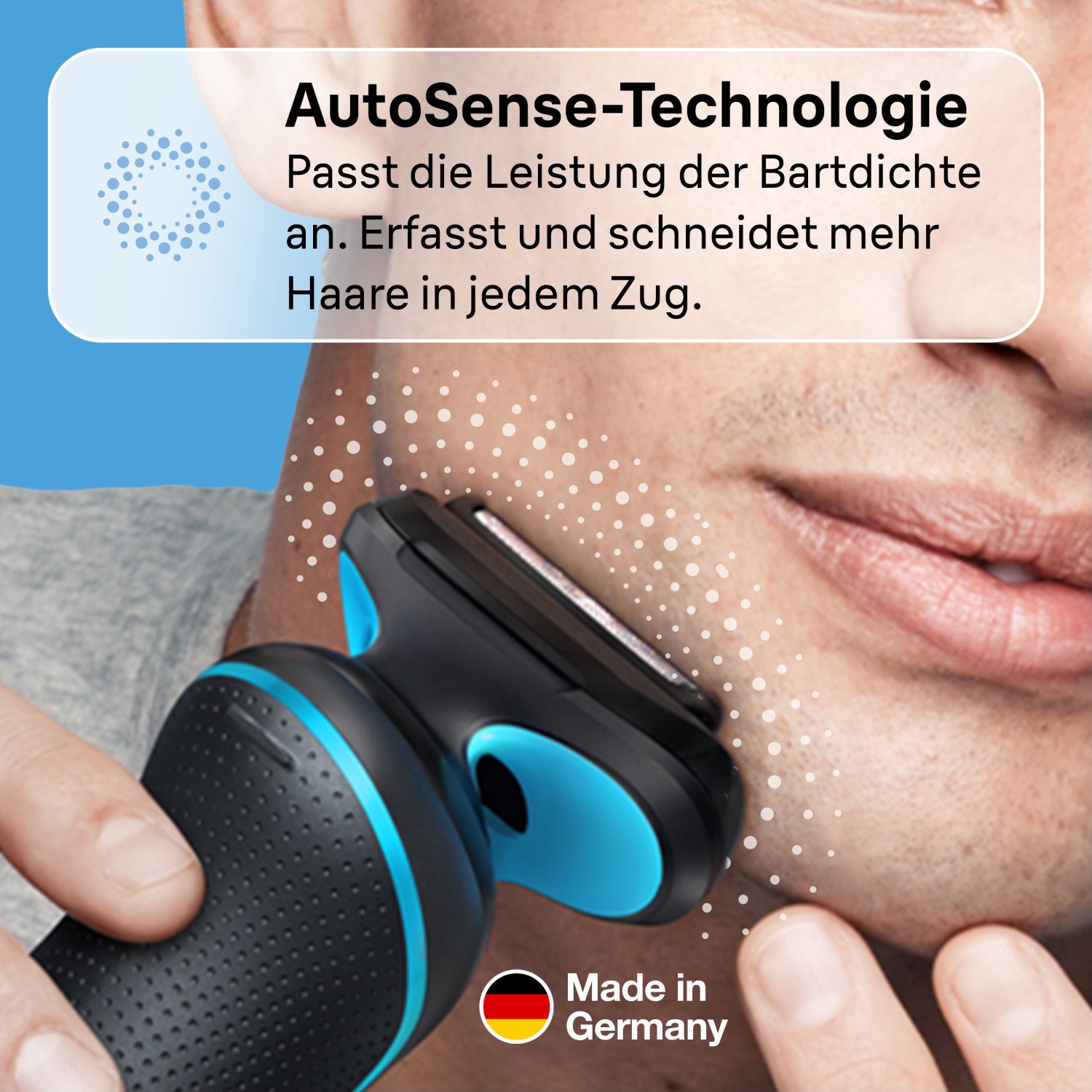 Mit der AutoSense-Technologie passt der Rasierer seine Leistung an die Bartdichte an. Diese Funktion ermöglicht es, mehr Haare in einem Zug zu erfassen und zu schneiden, was die Rasur besonders effektiv macht.