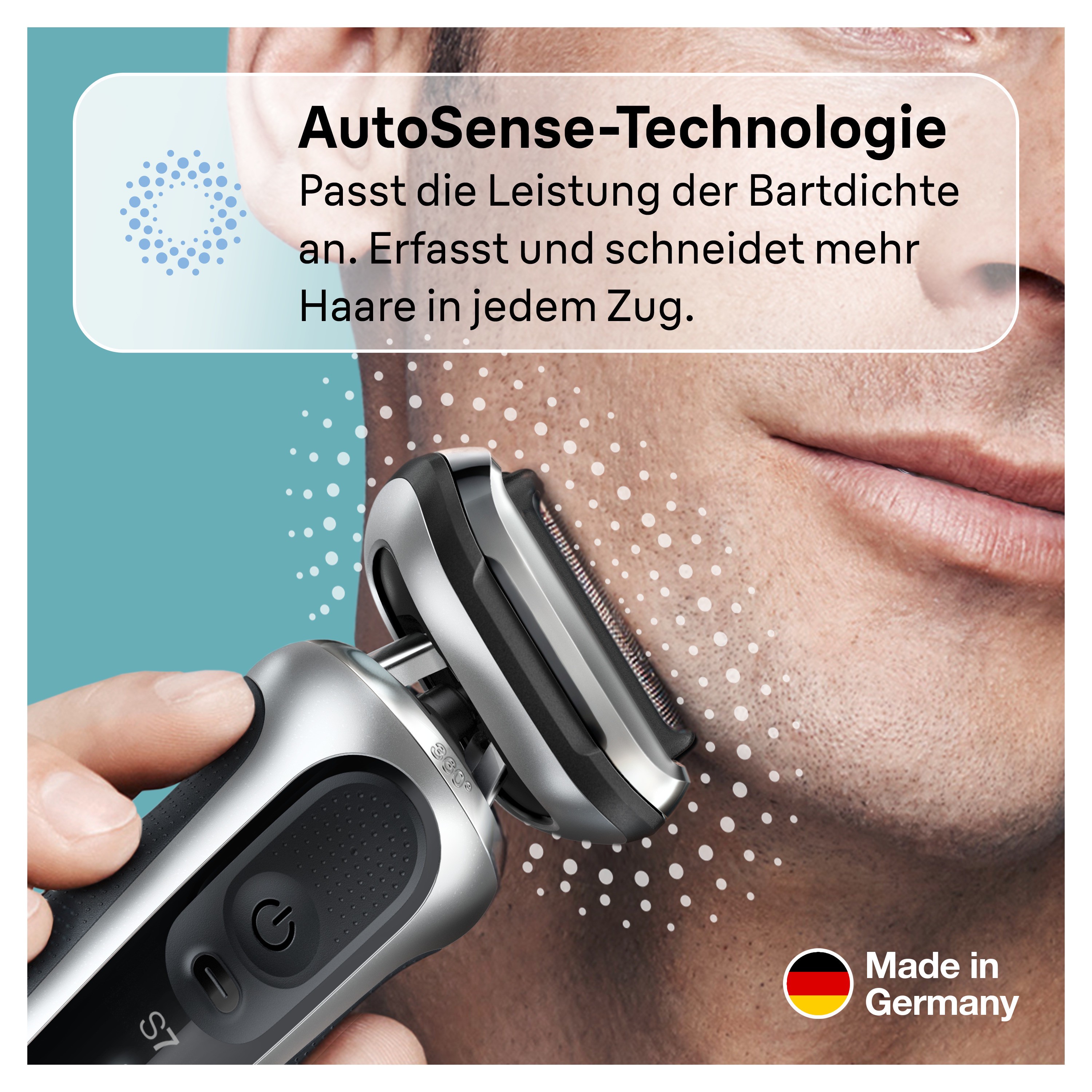 • AutoSense-Technologie passt Leistung an Bartdichte an, für effektive Rasur