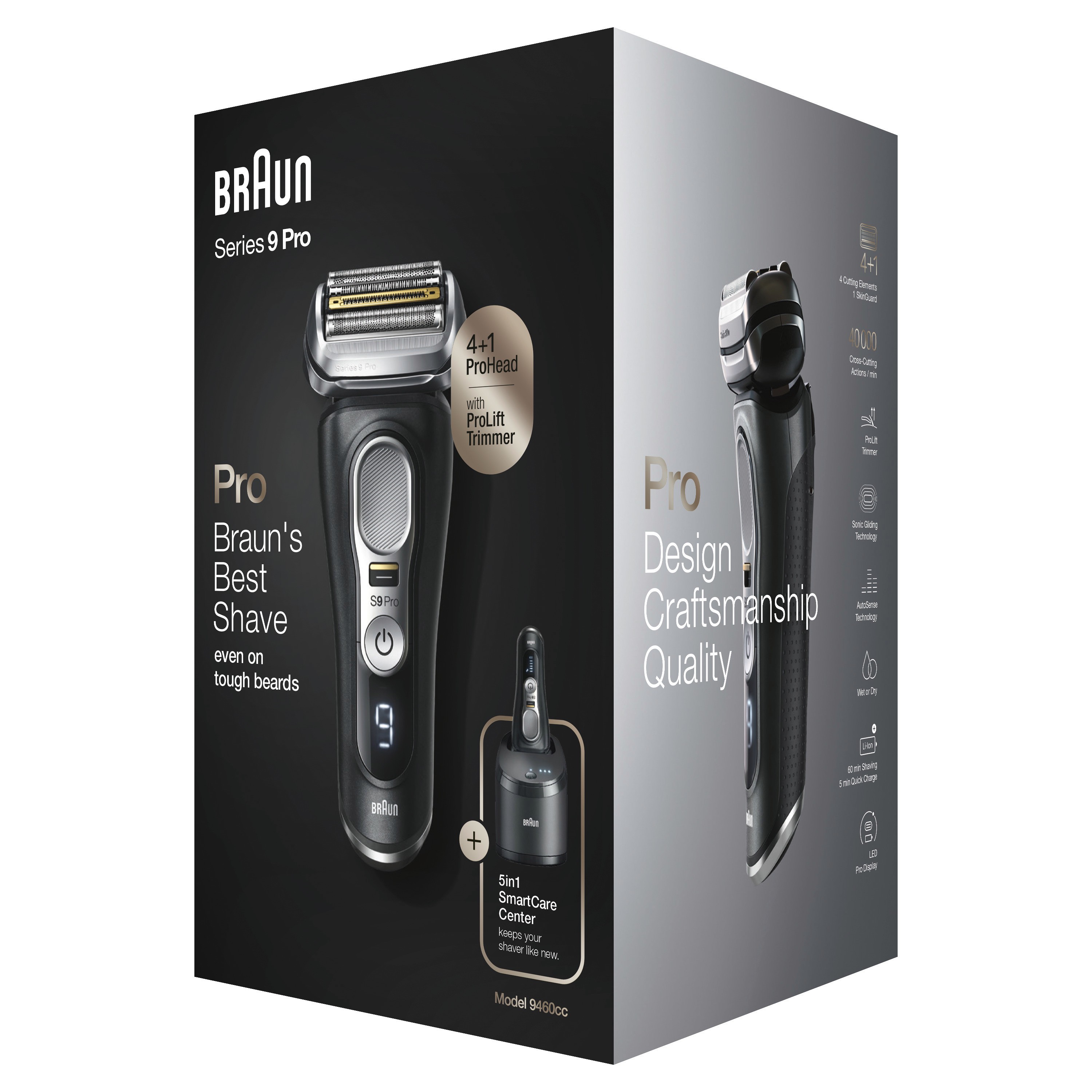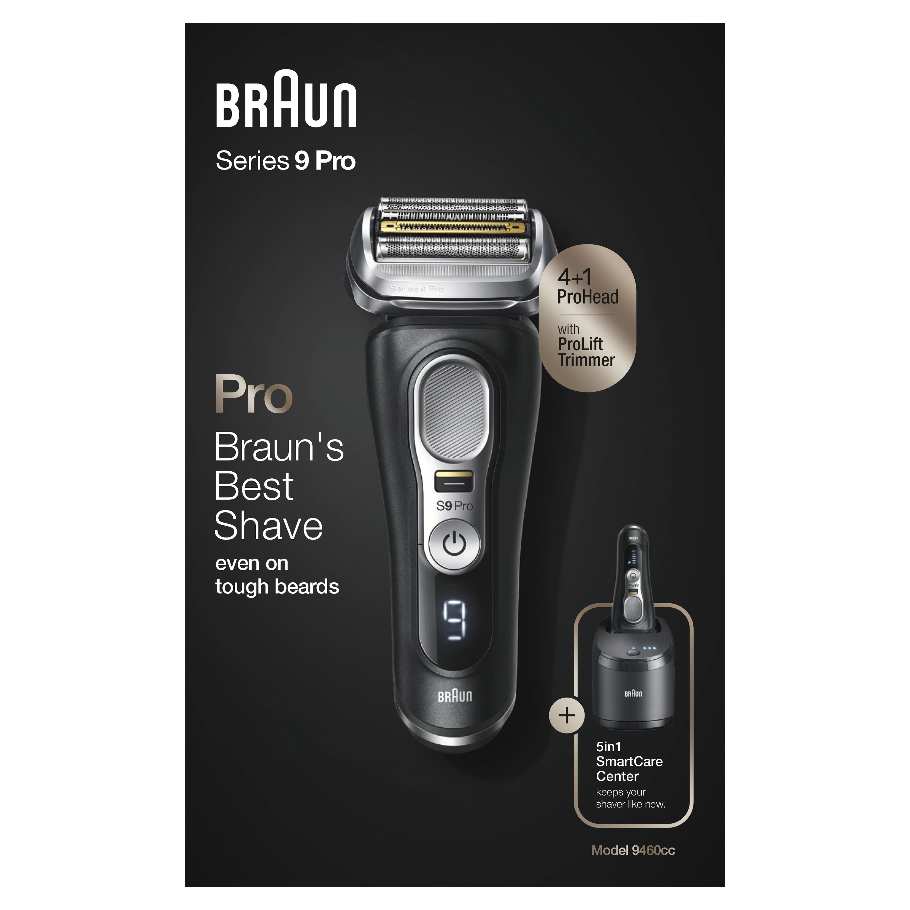 Braun Series 9 Pro 9460cc Elektrorasierer für Herren, 4+1 Scherkopf mit ProLift Trimmer, 5-in-1 Reinigungsstation, 60 Min. Akkulaufzeit, Wet&Dry