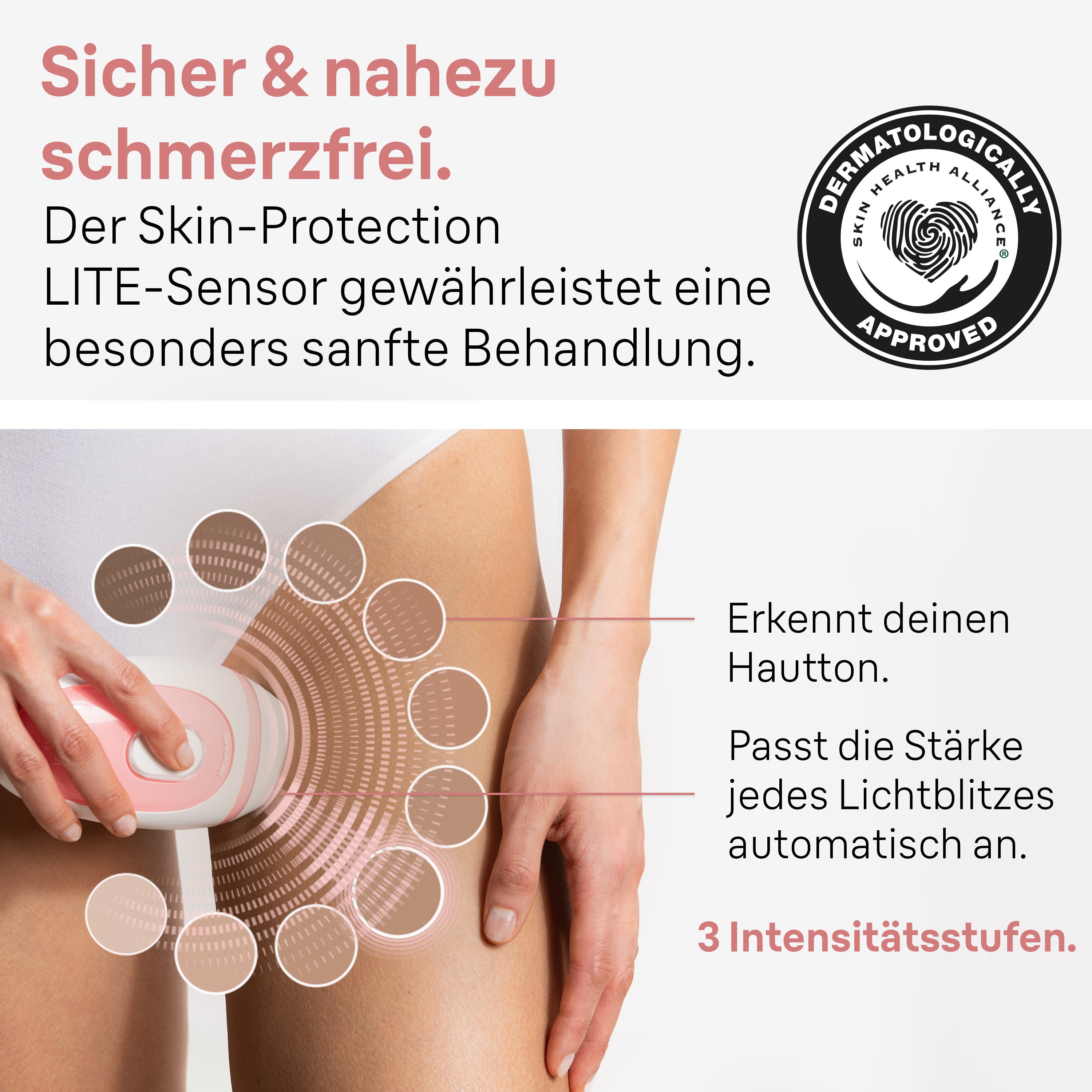 • Hautschonend mit individuell angepassten Lichtblitzen