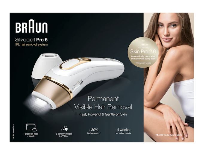 Braun IPL Silk-expert Pro 5, PL5160, dauerhaft sichtbare Haarentfernung weiß/gold - Xenudo