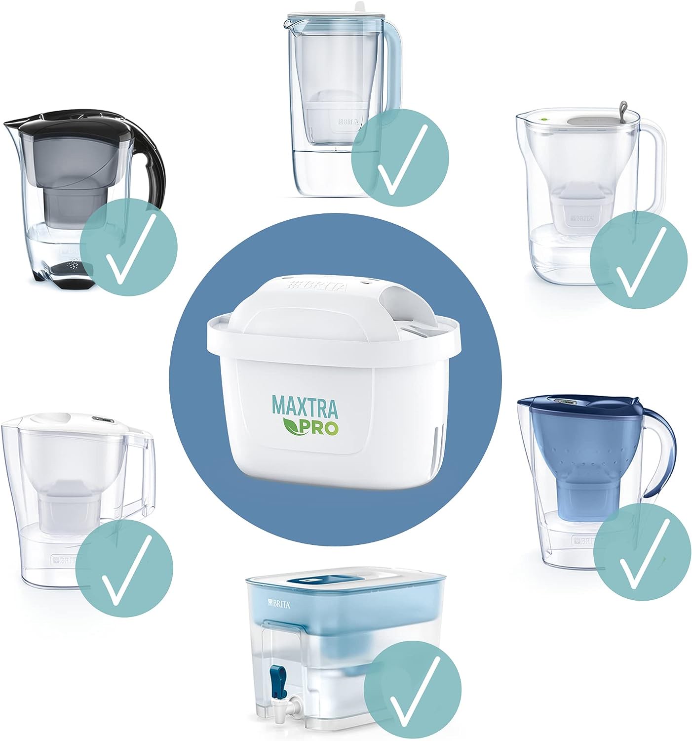 BRITA Wasserfilter-Kartusche MAXTRA PRO All-in-1 Original BRITA Ersatzkartusche reduziert Kalk, Chlor, Pestizide, Metalle wie Blei & Kupfer für Leitungswasser mit besserem Geschmack Immer auf der sicheren Seite mit dem Alleskönner MAXTRA PRO ALL-IN-1: genieße einfach leckeres & reines Leitungswasser – für kaltes Trinken, heiße Getränke & Kochen Innovative 4-stufige Filtration mit natürlicher Aktivkohle aus Kokosnussschalen & Ionenaustauscher-Perlen: reduziert Kalk, geschmacksbeeinträchtigendes Chlor und Metalle wie Blei & Kupfe und filtert Verunreinigungen aus bestimmten Herbiziden, Pestiziden und Medikamenten - Erhöhte Filterkapazität (gegenüber dem Vorgänger-Modell BRITA MAXTRA+): bis zu 150l in 4 Wochen hilft, noch mehr Plastikflaschen zu reduzieren - Nachhaltiger denn je: hergestellt in Europa aus 50% biobasierten Materialien (Deckel & Gehäuse) und über BRITA recycelbar – erfahre mehr auf der BRITA-Website - Passend für alle BRITA Wasserfilter-Kannen & BRITA Flow: dank des bewährten BRITA PerfectFit-Systems deine Sicherheit für eine zuverlässige & vollständige Filtration - Vertraue dem Original: reines, frisch und lecker schmeckendes BRITA-gefiltertes Leitungswasser – schützt zudem Küchengeräte zuverlässig vor Verkalkung - Verbesserte Filtrationsleistung: Das innovative Hochleistungs-Filtergewebe reduziert Mikropartikel (≥ 30 μm) 4x besser als die bisherige BRITA MAXTRA+ Filterkartusche – ideal für ältere Rohrleitungen Doppelt smart! Mit der MAXTRA PRO bietet BRITA zwei Wasserfiltrationsexperten: den Alleskönner ALL-IN-1 & den Kalkexperten EXTRA KALKSCHUTZ für zusätzlichen Geräteschutz mit +50% effektiverer Kalkreduktion als die ALL-IN-1 Kartusche, besonders konzipiert für hartes bis sehr hartes Wasser. Mach mit – denn jede Plastikflasche zählt. Mit jedem BRITA-Produkt trägst du aktiv dazu bei, die Menge an Plastikflaschen zu reduzieren, die im Müll landen.