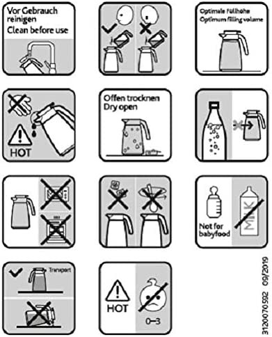 • Hält Getränke im gefüllten Zustand 12 h heiß oder 24 h kalt