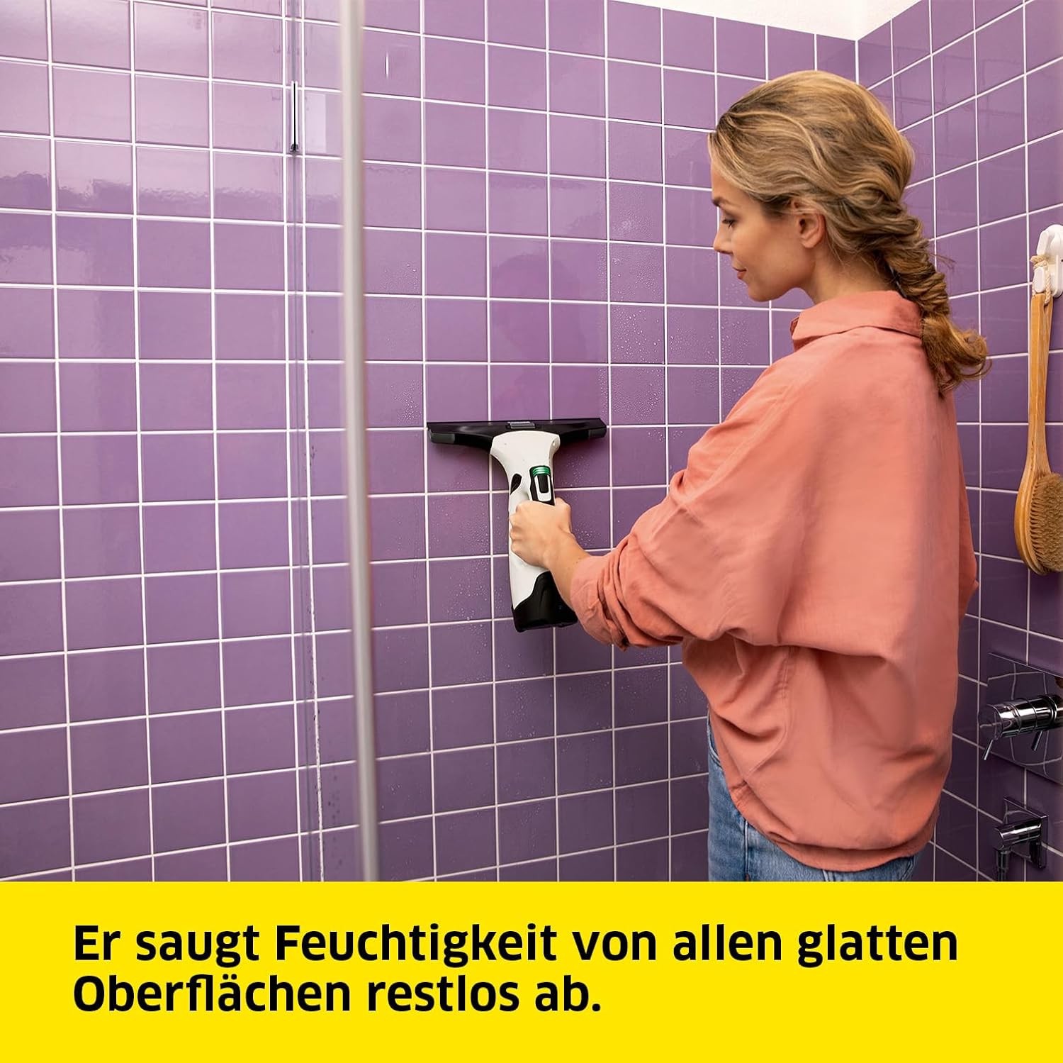 • Streifenfreie Ergebnisse: Der Kärcher Fenstersauger WV 5 saugt Feuchtigkeit von glatten Oberflächen wie Fenstern, Spiegeln oder Fliesen restlos ab, ohne Streifen oder Schlieren zu hinterlassen