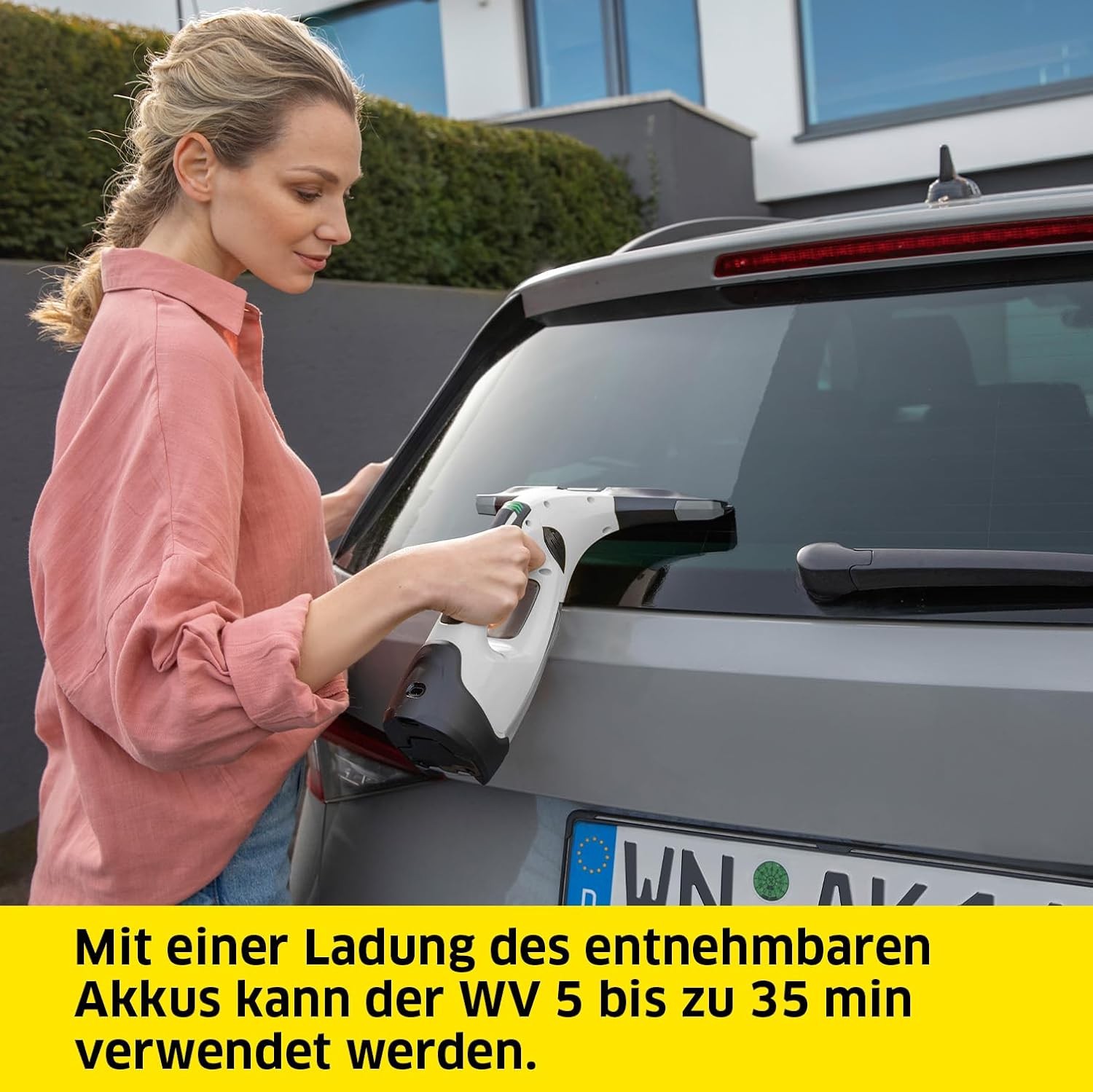 • Eine Akkuladung reicht aus, um den Fenstersauger bis zu 35 min am Stück zu verwenden.