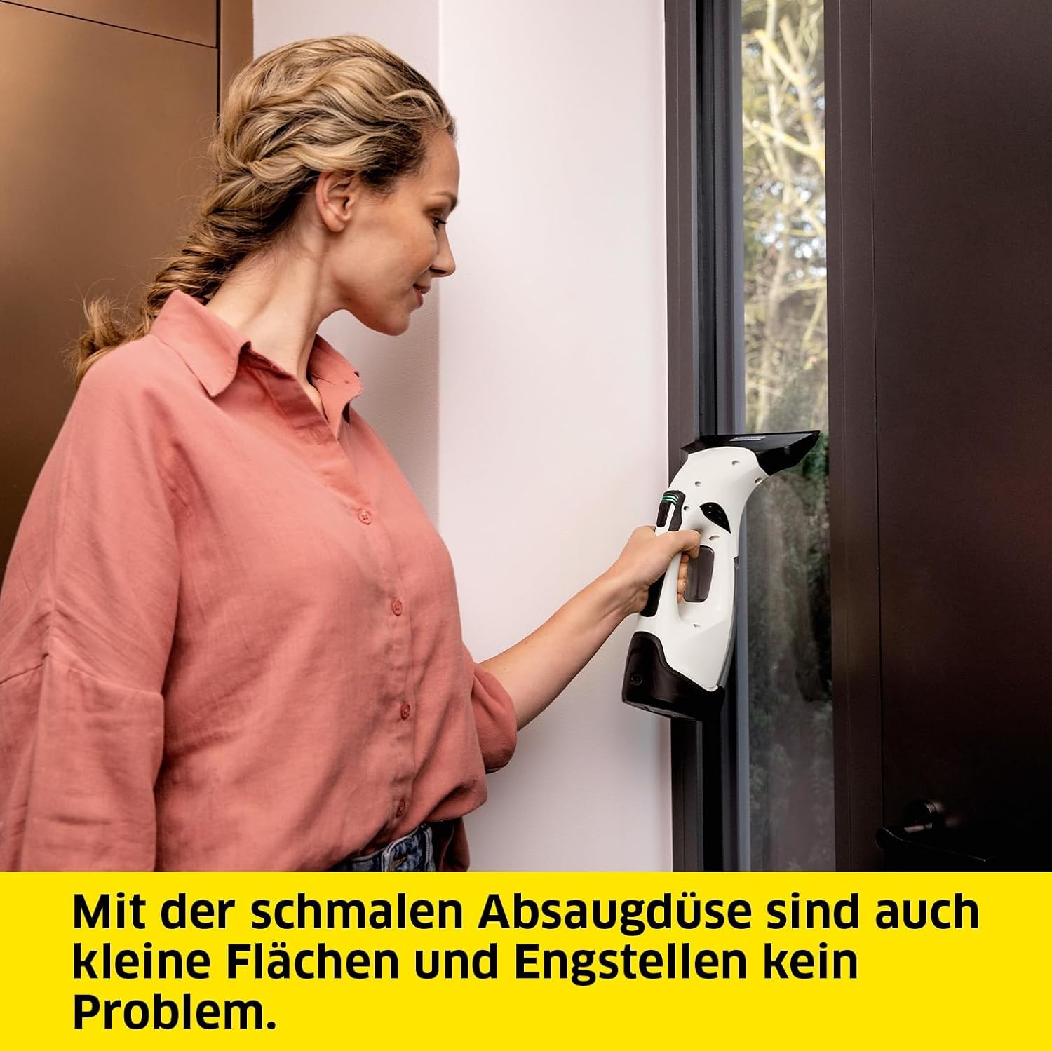 • Der Kärcher Fenstersauger WV 5 saugt Feuchtigkeit von glatten Oberflächen ohne Streifen oder Schlieren zu hinterlassen.