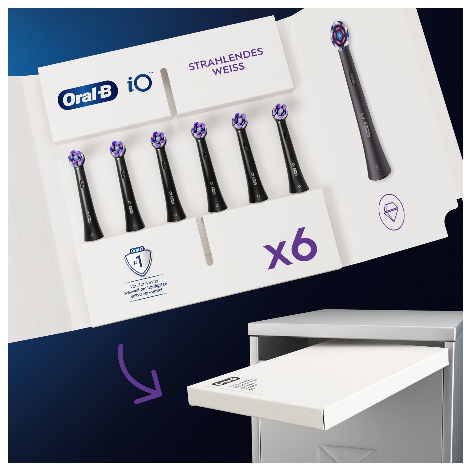 Oral-B iO Aufsteckbürsten Strahlendes Weiss, briefkastenfähige Verpackung, schwarz, 6 Stück