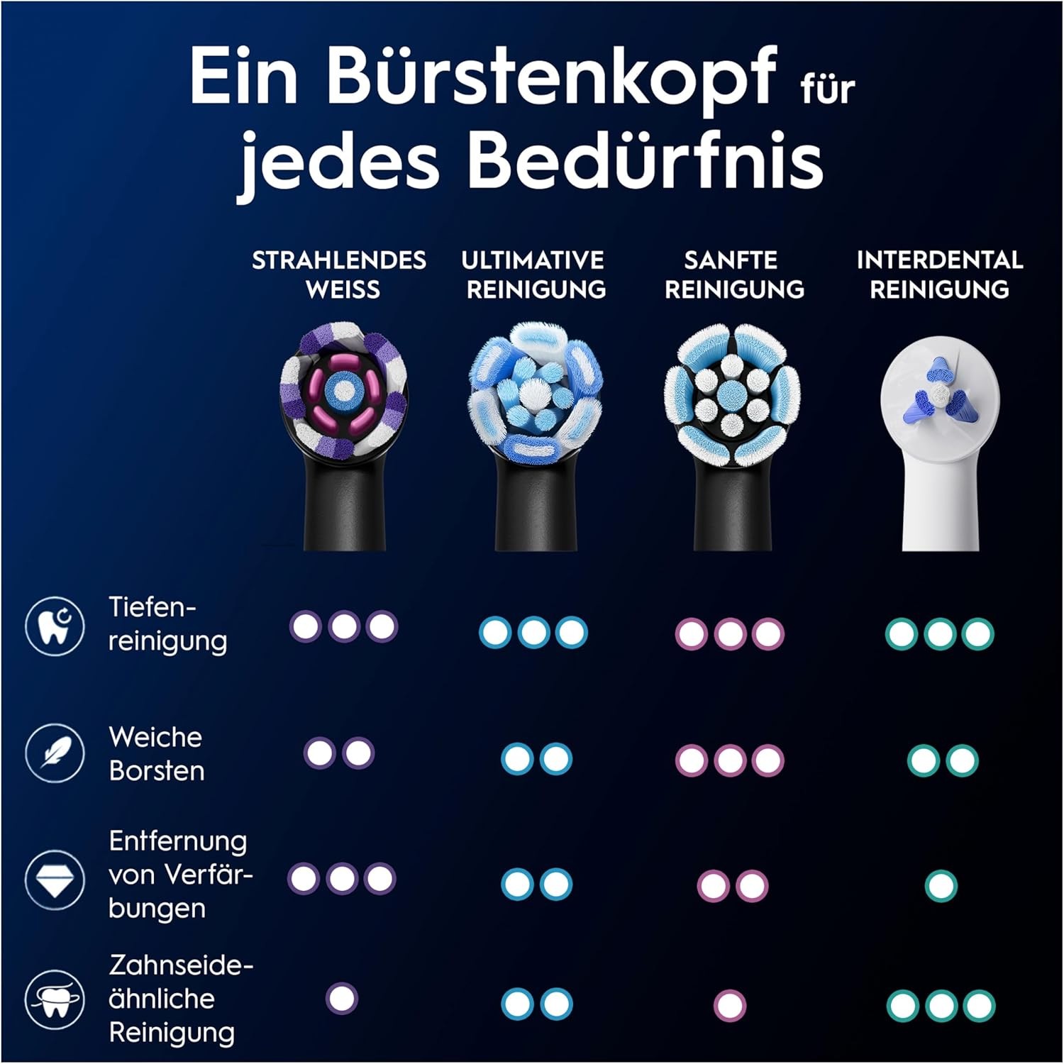 Überlegene Reinigungskraft mit dem einzigen Bürstenkopf, der exklusiv und garantiert passend für die Oral-B iO elektrische Zahnbürste entworfen wurde