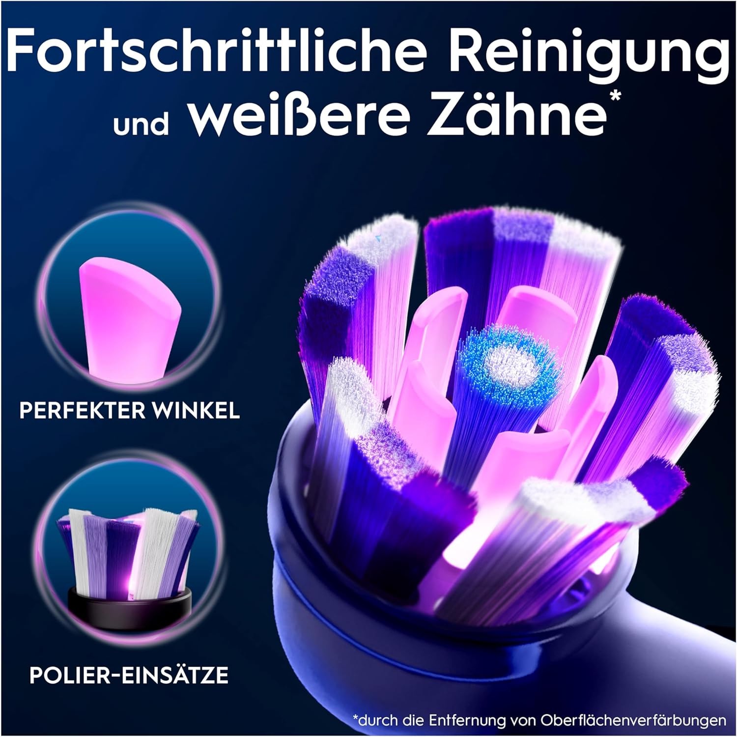 • ZEIT ZU WECHSELN: Die Aufsteckbürsten von Oral-B verfügen über Borsten, die signalisieren, wann der Bürstenkopf gewechselt werden sollte, für maximale Reinigungsleistung