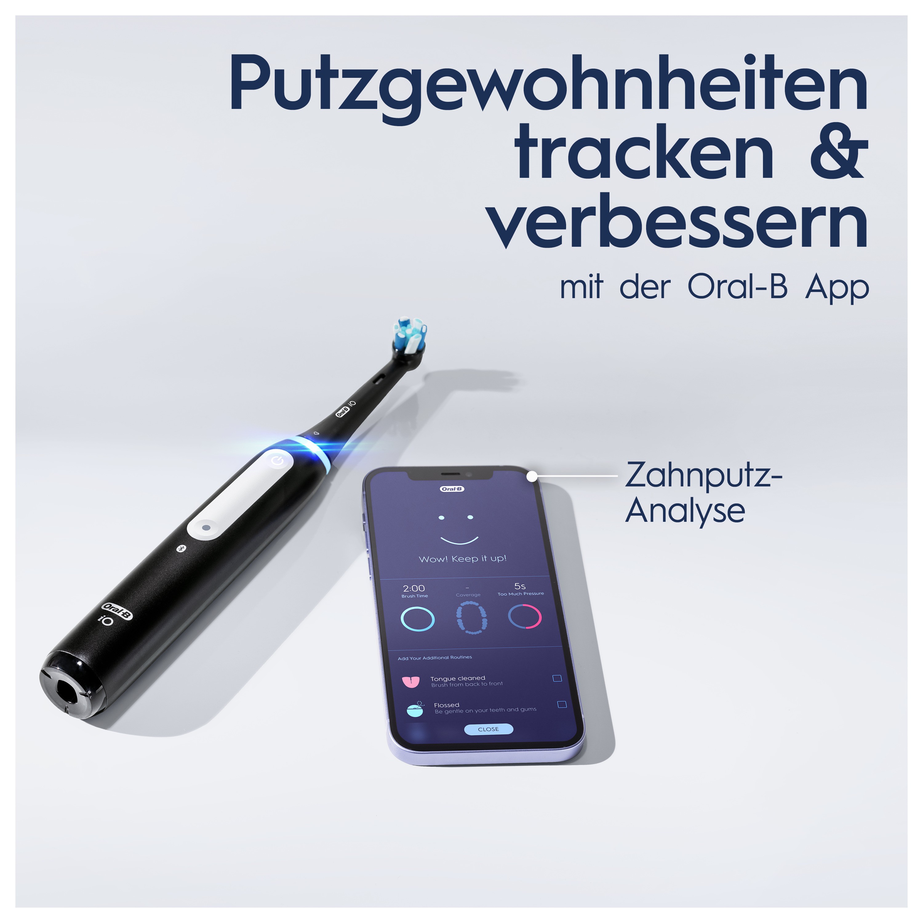 Mit der Oral-B App lässt sich das Putzverhalten analysieren und verbessern. Die App bietet personalisierte Tipps und Feedback, um die tägliche Mundpflege zu optimieren.