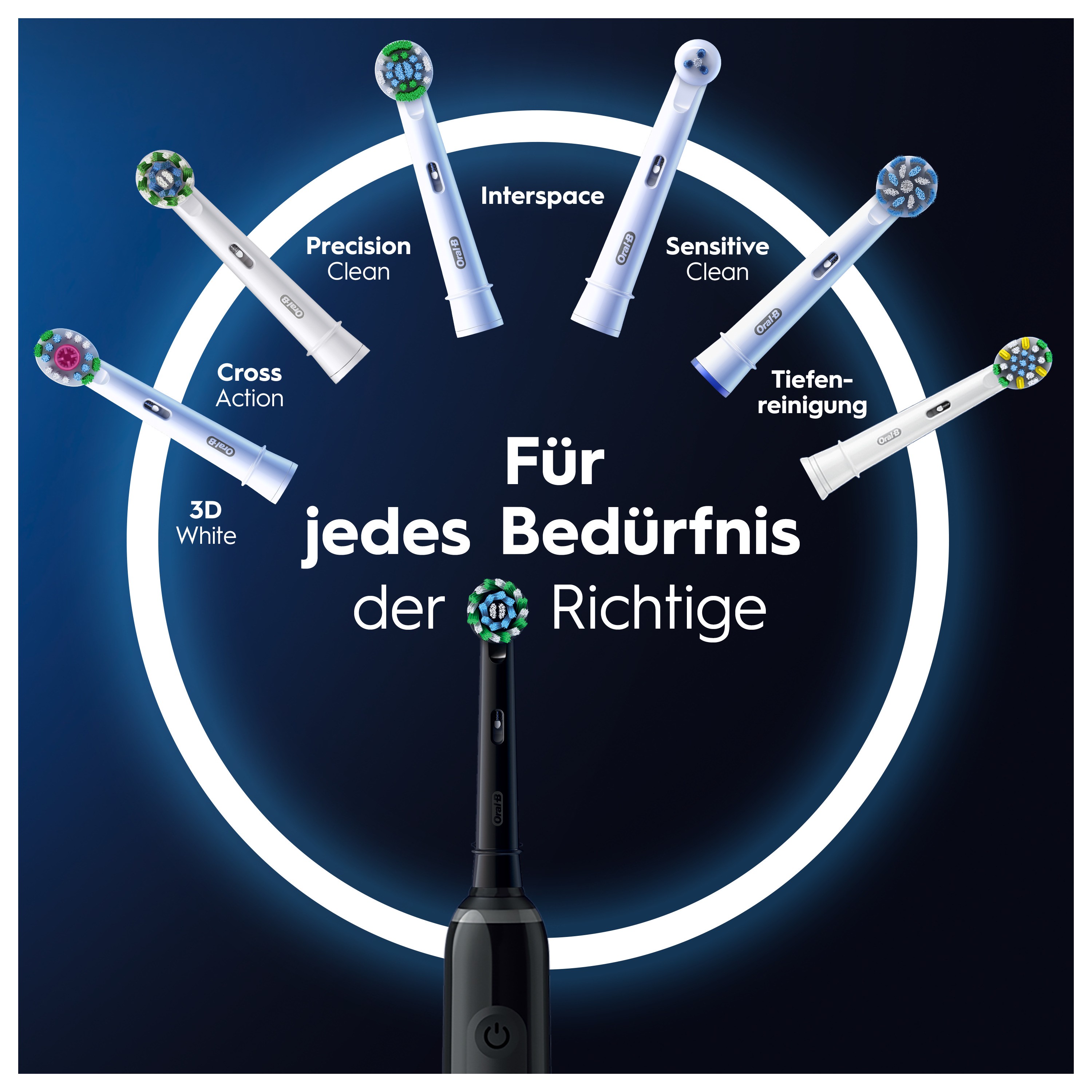 Die Oral-B Pro Series 3 ermöglicht ein auf die individuellen Bedürfnisse abgestimmtes Zähneputzen. Verschiedene Bürstenköpfe, wie Tiefenreinigung, Sensitive Clean oder 3DWhite, stehen zur Verfügung, um jedem Bedarf gerecht zu werden.