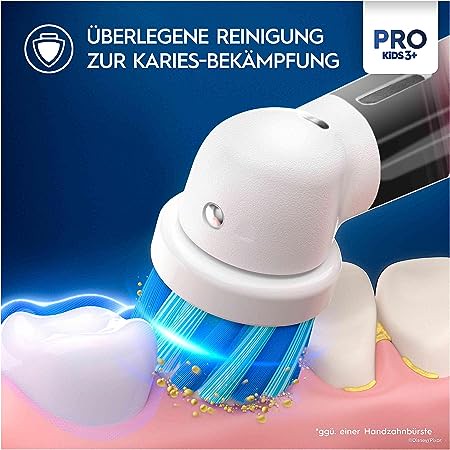 • Die Oral-B Pro Kids elektrische Zahnbürste sorgt für eine überlegene Zahnreinigung zur Bekämpfung von Karies
