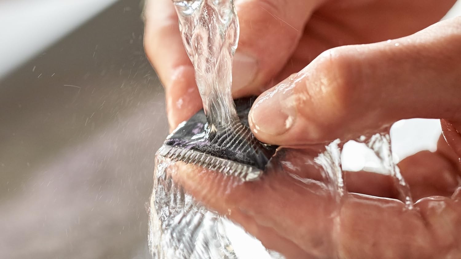 Nehmen Sie den Kopf ab und spülen Sie ihn unter fließendem Wasser für eine einfache Reinigung. Trocknen Sie es bevor Sie es wieder auf das Gerät legen.