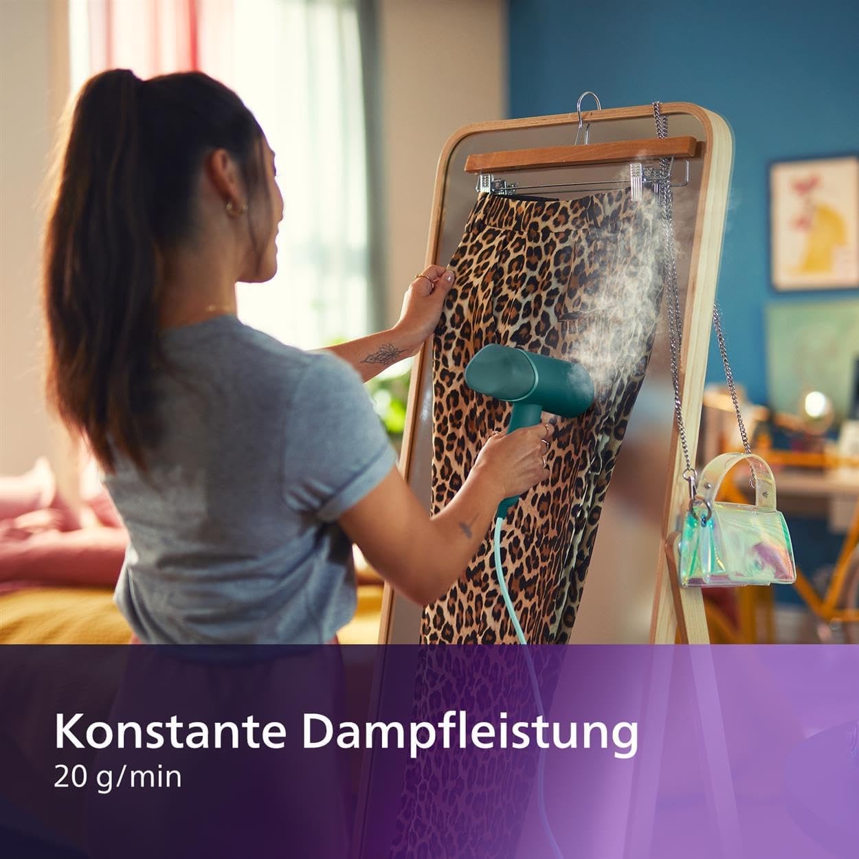 • Einfache Faltenglättung mit 20 g/min konstanter Dampfleistung.