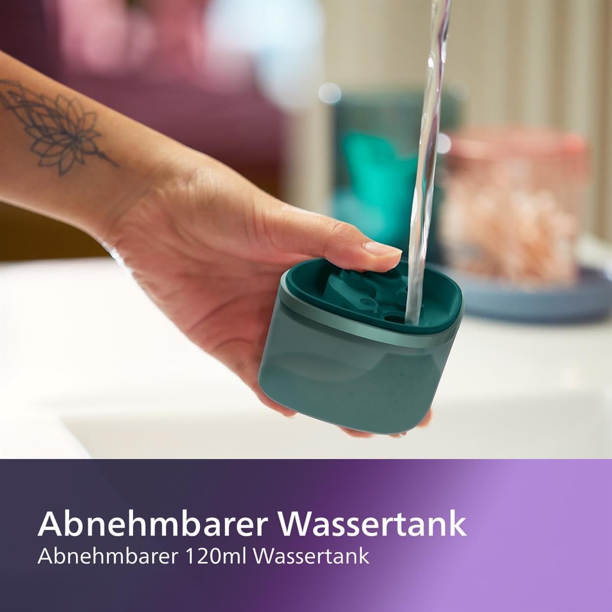 Der 3000 Series Steamer ist mit einem abnehmbaren 120ml Wasserbehälter ausgestattet, mit dem du ein ganzes Outfit in einer Anwendung glätten kannst. Zum Nachfüllen hälst du den Tank einfach unter den Wasserhahn.