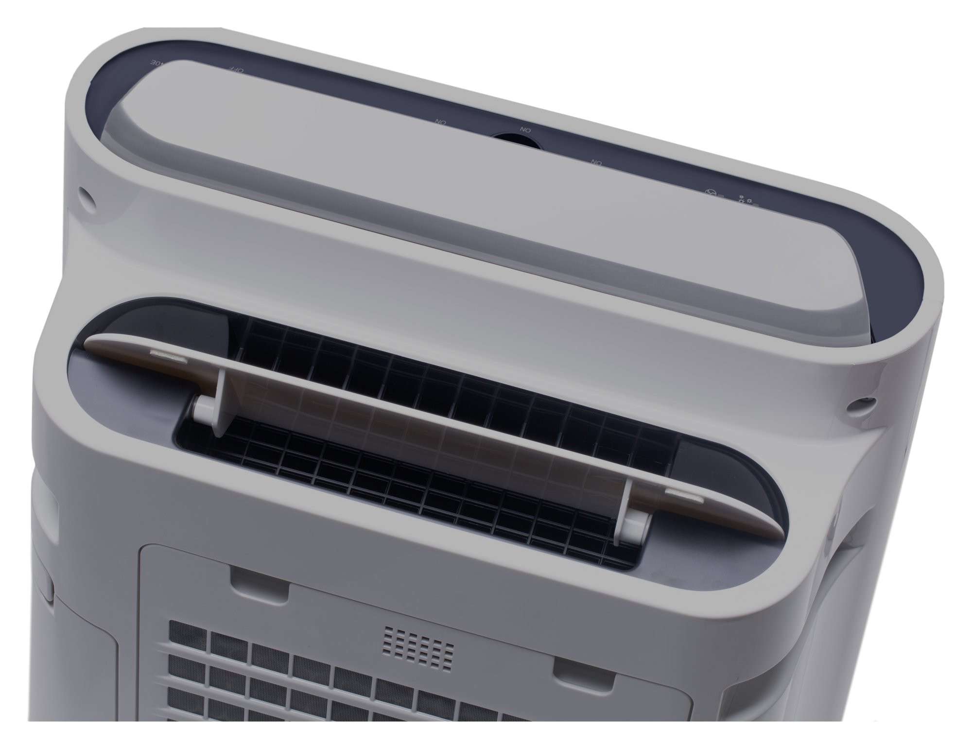 • Wirksame Luftreinigung dank 3 Filterstufen und perfekte Luftzirkulation durch den um 20° gebogenen, rückseitigen Ablass der Luft