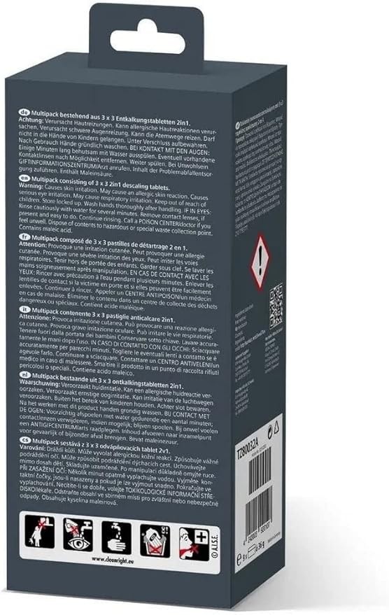 Einfaches Entkalken: Dank der leistungsstarken Siemens-Entkalkungstabletten Längere Geräte-Lebensdauer und perfektes Aroma dank optimalem Schutz vor Kalkablagerungen Speziell entwickelt für den Entkalkungsprozess der Siemens Kaffeevollautomaten EQ300, EQ500, EQ6 plus, EQ700, EQ9 plus, EQ900 und EQ900 plus, sowie Einbaukaffeevollautomaten 2in1-Formel: Entkalkung und Schutz vor Korrosion und Rost deines Kaffeevollautomaten Lieferumfang: Packung mit 9 Entkalkungstabletten
