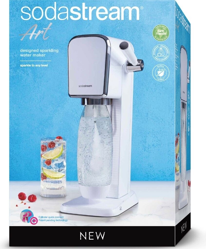 Der Wassersprudler bringt frischen Sprudel in den Alltag. Mit einem einfachen Hebel lässt sich Leitungswasser in prickelndes Wasser verwandeln. Das Gerät ist in einem schlichten Weiß gehalten und fügt sich dezent in jede Küche ein.