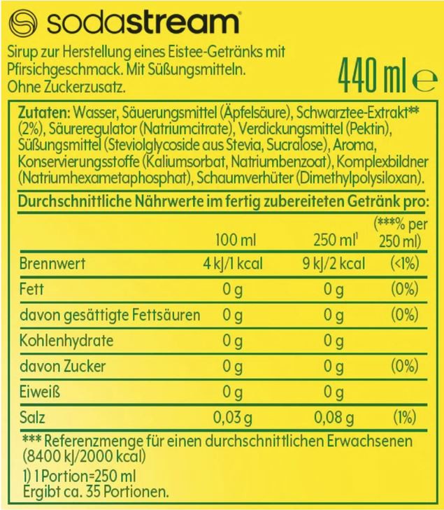 • Zugleich stellt der SodaStream Sirup Ice Tea Pfirsich ohne Zucker eine umweltschonende Alternative zu normalen Limonaden dar